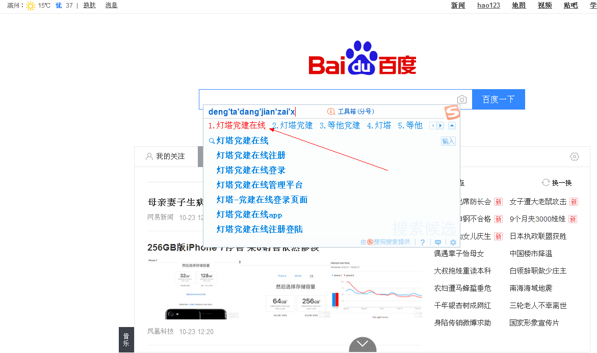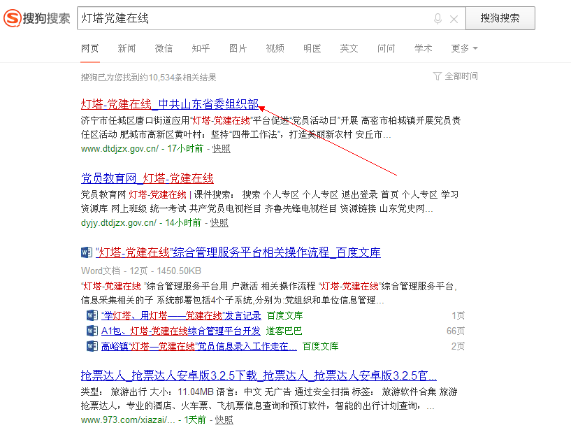 1、在浏览器中输入“灯塔党建在线”字样,选择“灯塔-党建在线 中共山东省委组织部”。
