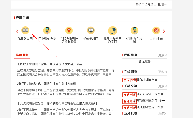 3、登录后,点击“党员教育网”,通过“首页”、“学习资源库”、“课件排行”等专栏,选择课件进行学习。
