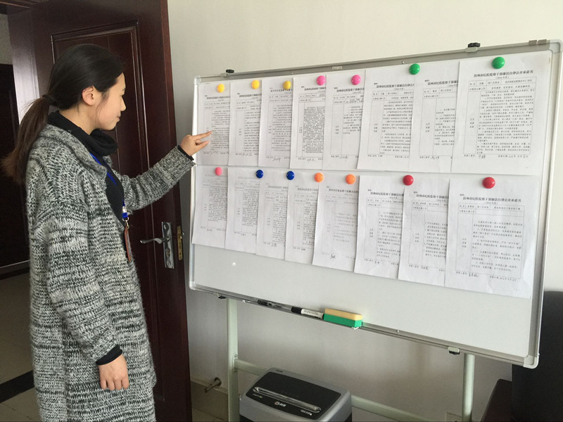 承诺书签订后,在公示栏中进行长期公示,工作人员经常对照自查、自警自醒,主动接受广大群众和社会监督。